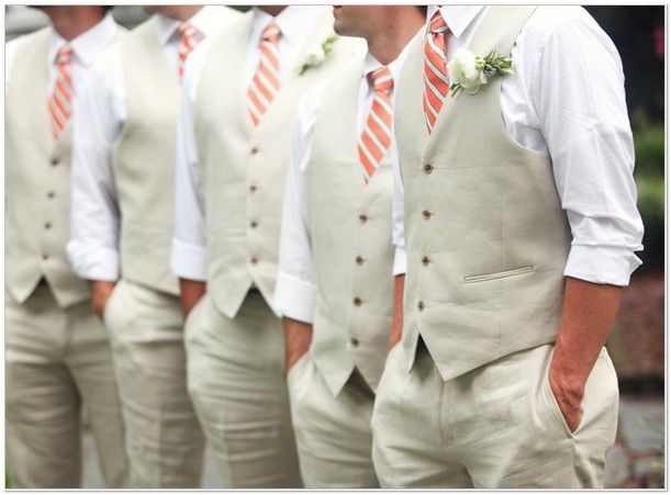 You may have always dreamed of your husband wearing a tux for your wedding. As we talked about before for the bride's dress, same goes for the groom. A black tux in the sun, no way. The best attire for men in a Greek beach wedding is linen pants or long shorts, cotton shirts, sandals or loafer type shoes, and light colors. If you are both set on him wearing something a bit more dressy, he could wear everything except the jacket.